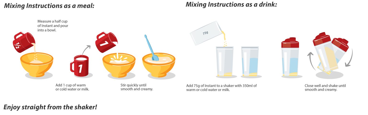 Mixed with milk or water – it’s always packed with super taste – your perfect meal on the run. Great as a breakfast porridge or as an in-between snack or shake.